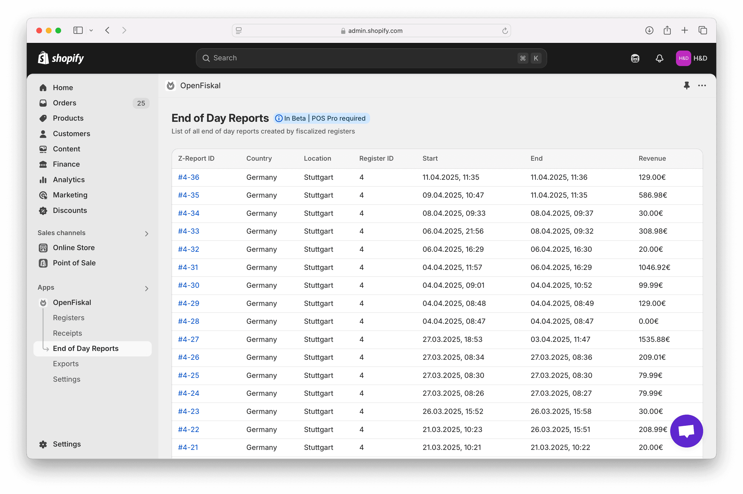 Diese App ist einfach ein Gamechanger, wenn man Shopify POS in DE vernünftig & mit einen guten Rechtsgefühl nutzen möchte. Besonders der digitale PDF Z-Bon vereinfacht ungemein mein Setup in Verbindung mit dem Datev Kassenbuch. Ein manuelles Ausdrucken und dann Einscannen, was die „Lösung“ von Shopify stand heute ist, gehört endlich der Vergangheit an.