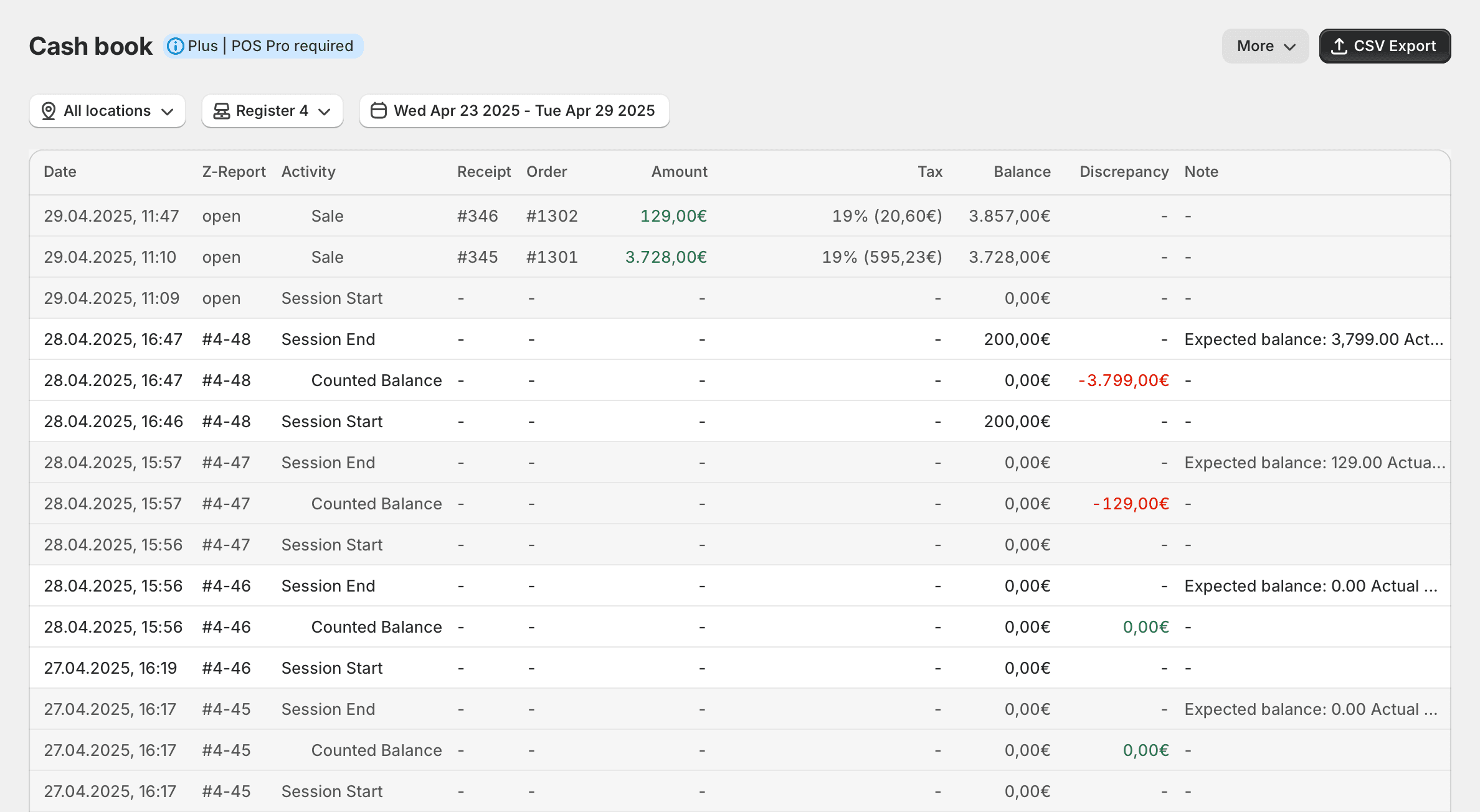 Create end of day reports or z-reports that are way more powerful than Shopify's own.